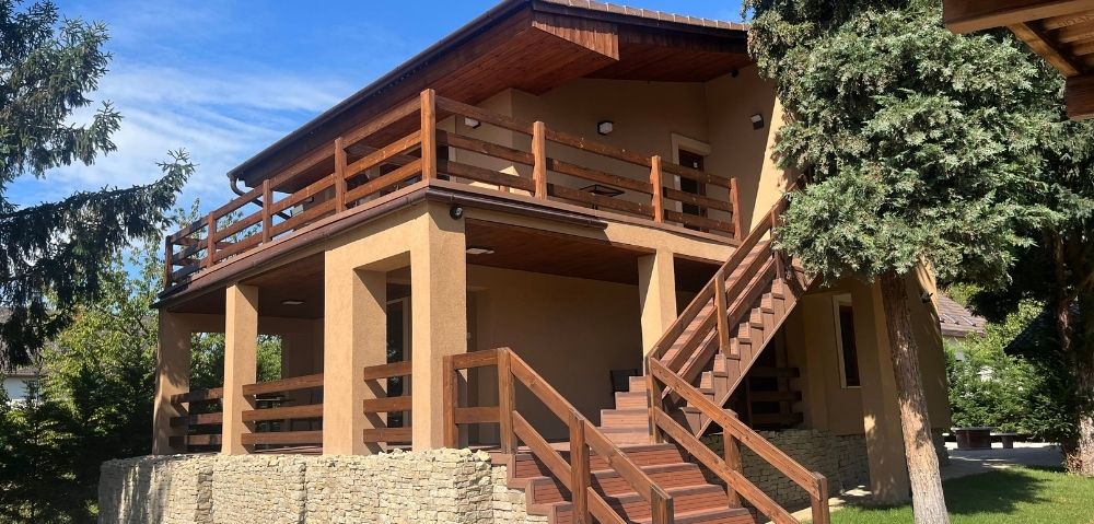 4 különböző méretű, teljesen felszerelt szobával várunk balatoni horgász szállásunkon. Étkezővel, ("nyári konyha"), fedett autóbeállóval.
