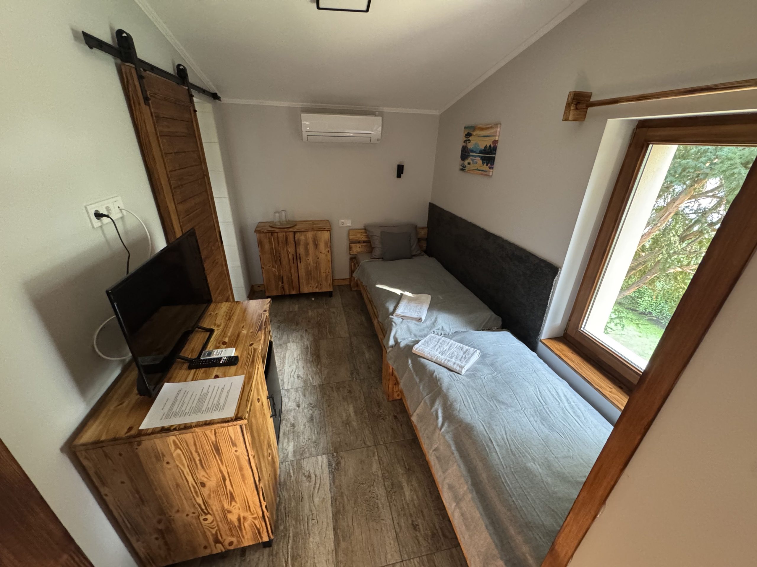 2023-03-26 by Tzoltan 4. szoba Maximum 2 fő részére (1 légtér + 1 fürdőszoba).Ez a szobánk az emeleten található, saját terasszal.2 db egyszemélyes ágy.Ruhásszekrény + éjjeliszekrény.A szoba minimum 2 éjszakától foglalható.A 4. szoba árai:1 fő részére: 19.500/nap2 fő részére: 39.000/napNézze meg a szobáról készült fényképeket: Részletek Vendégek: 2 Szolgáltatások: Fedett parkoló, Légkondi, Mini hűtő, TV, Wifi Nézet: Partközeli szállás Ágy típus: Egyszemélyes ágyak Kategóriák: Horgász szállás Kezdő ár: 39,000 Ft 2 éjszaka Elérhetőség Foglalási űrlap A kötelezően kitöltendő mezők * -al vannak jelölve Bejelentkezési dátum * Kijelentkezési dátum * Reserve 1 of 1 available accommodations. 4. szoba foglalható a kiválasztott időpontban.